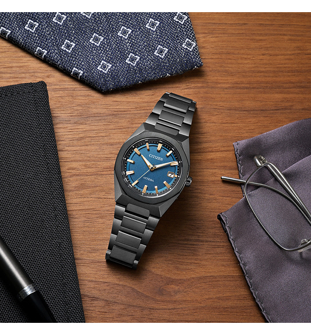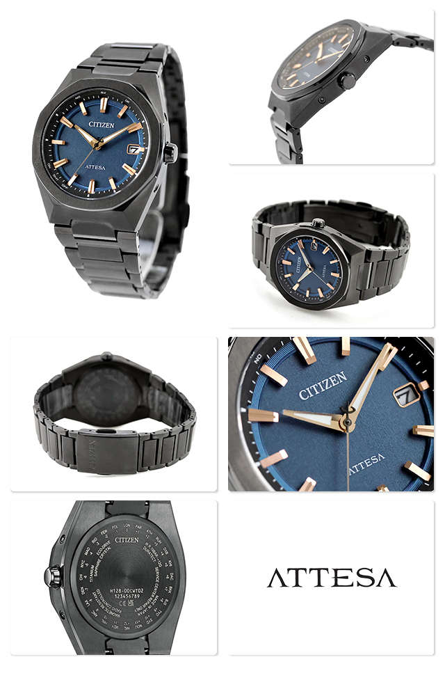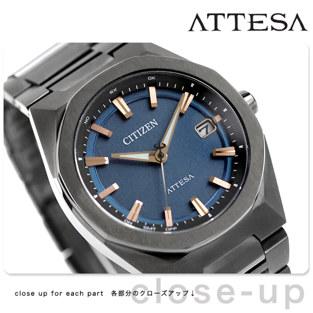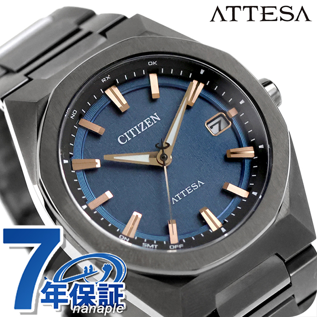 正規品 7年保証キャンペーン 送料無料 シチズン アテッサ ダイレクトフライト ACT Line チタン 電波ソーラー 日本製 エコ・ドライブ電波 メンズ 腕時計 CB3045-61L CITIZEN ATTESA アナログ ブルー ブラック 黒 ◆チタニウムで次世代を進み続ける、シチズン ATTESA(アテッサ)。八角形のコンパクトなケース、スポーティなデザインが人気の3針モデルに、メタリックなカラーと質感にこだわった新作の登場です。力強く軽快なデザインの「ACT Line」。文字板は、再生ポリカーボネートにヘアラインの成型パターンを施し、メタリック塗装を組み合わせることで、金属の一枚板を思わせる仕上がりを実現。下板、上板、見返しリングで構成される3体構造が立体感を生み出し、シンプルな中にもソリッドな力強さを感じさせます。メタリックな質感を生かした深いネイビーに、ピンクゴールドのインデックスと針を重ねたラグジュアリーな仕上がり。都会の夜に映える、洗練された大人の魅力を感じさせる1本です。 発売日:2026年3月発売