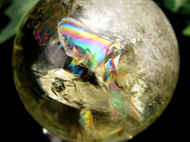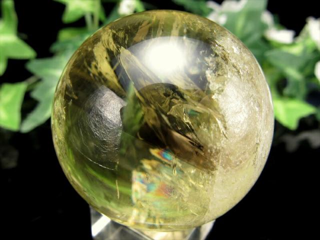 超透明 5A ファントム・虹入り シトリン 丸玉 台座付き 直径42mm 重さ104g 透明感抜群 金運 財運 幸運 お守りにも 一点もの ブラジル産 パワーストーン 天然石