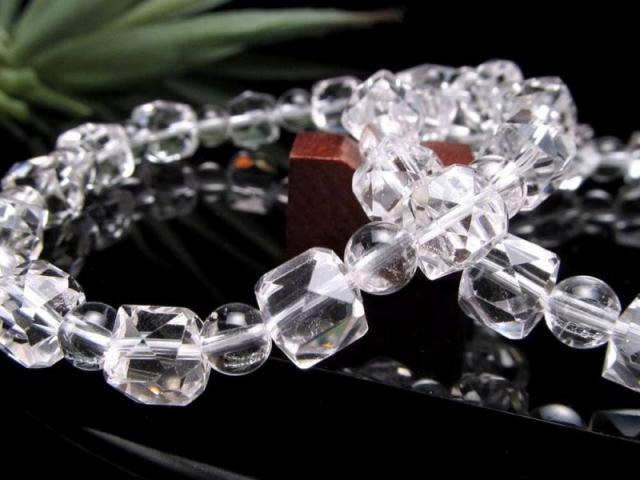 3A 天然水晶 デザインブレスレット キューブ幅約9.5mm-10mm 丸珠約6mm-7mm クリスタルデザインブレス 透明感抜群天然水晶使用 純粋と浄化を象徴する石 ブラジル産 パワーストーン 天然石