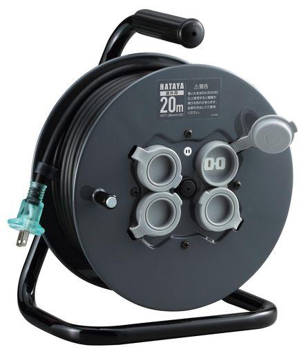 ハタヤ (HATAYA) コードリール 屋外用 (防雨型) 100V型 コード20M 太さ1.25MM2 標準型 コンセント4個 コンセント防雨キャップ 家庭用 工場用 建設現場 フラットリール FF-20
