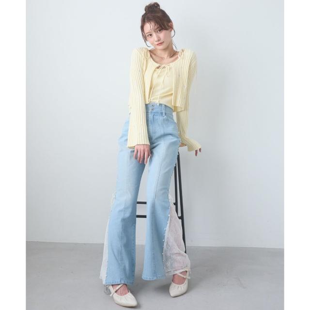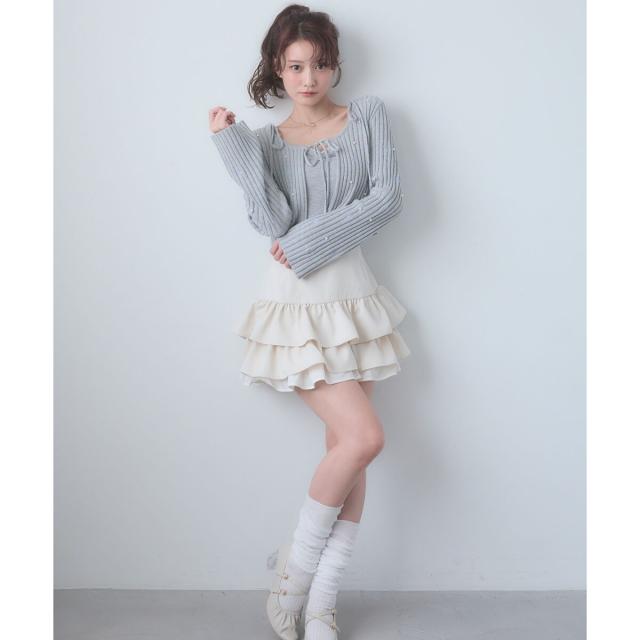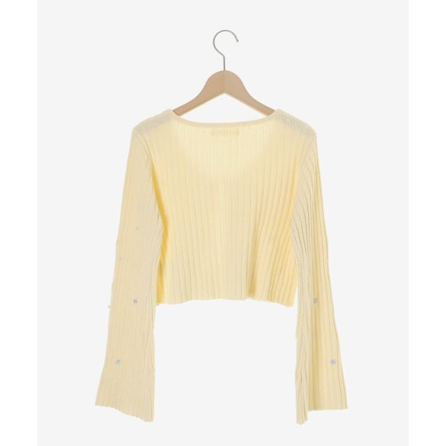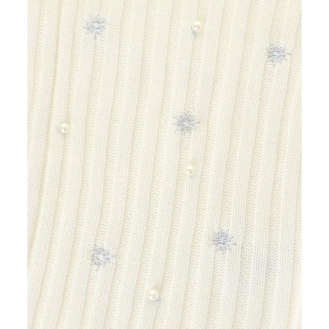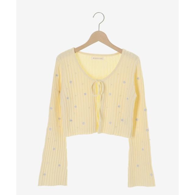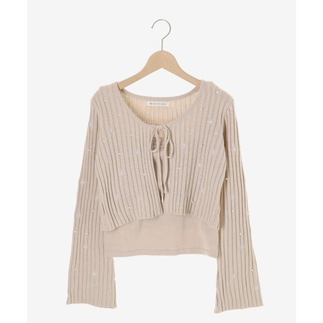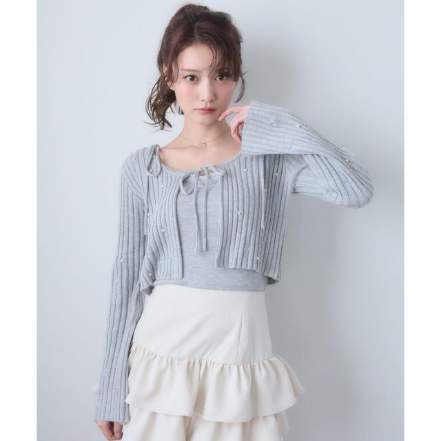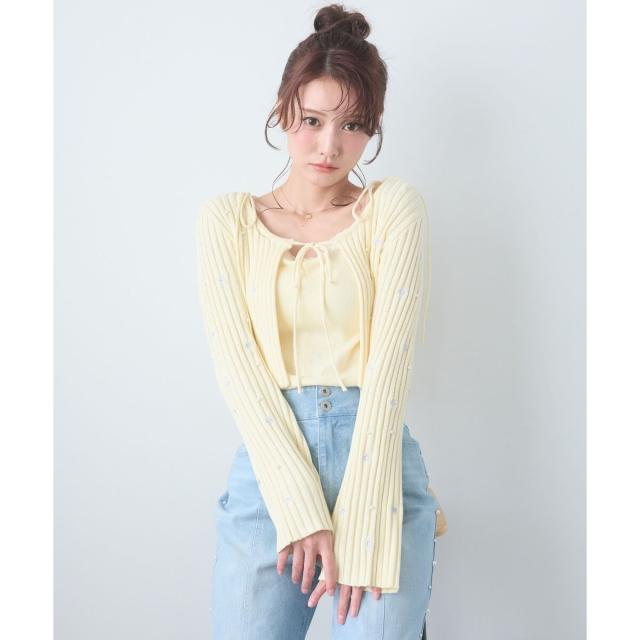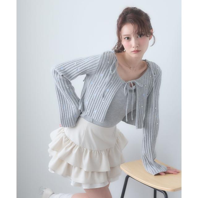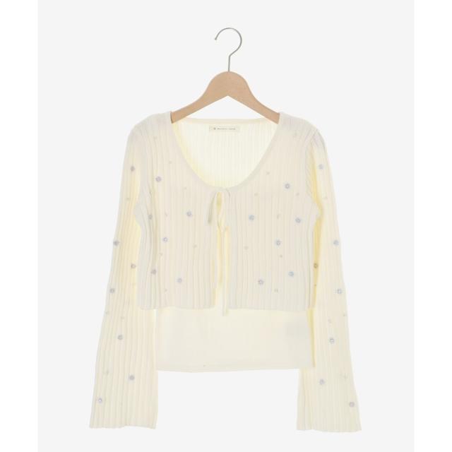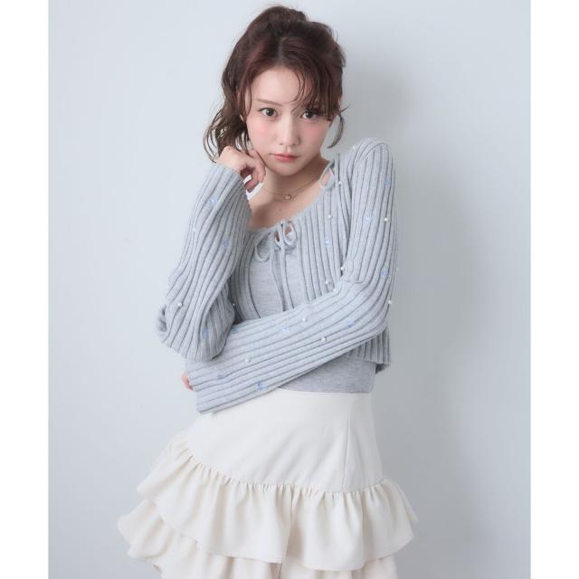 カーディガン全体に小花柄の刺繍とパールを散りばめ、ロマンティックで可愛らしい印象に仕上げました。