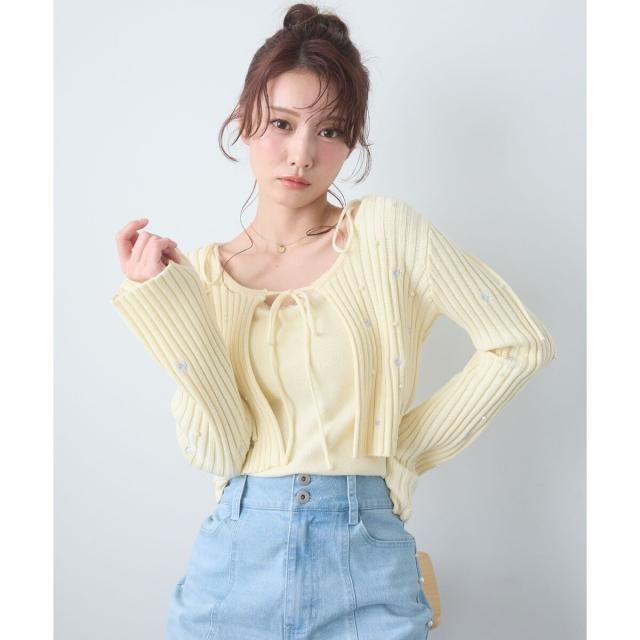 ■素材:[カーディガン]本体/アクリル57% 綿43% 刺しゅう糸/ポリエステル100% [キャミソール]本体/アクリル57% 綿/43% レース部分/ナイロン100%