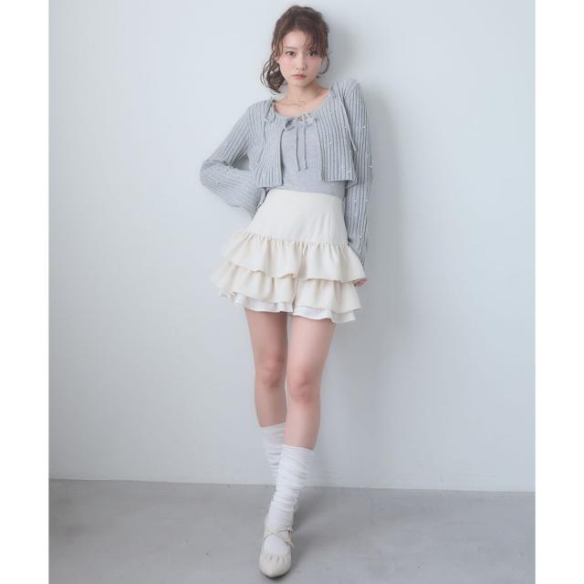 カーディガンはコンパクトなシルエットと縦のラインを強調するリブ編みで、着るだけでスタイルアップを叶えてくれるのも嬉しいポイント。