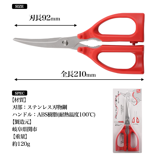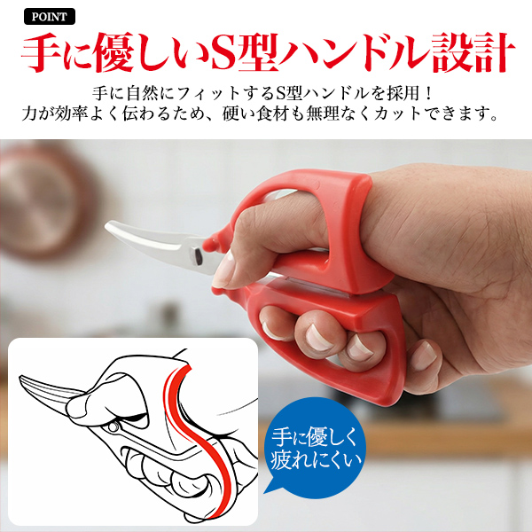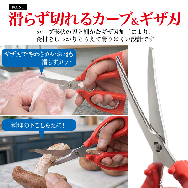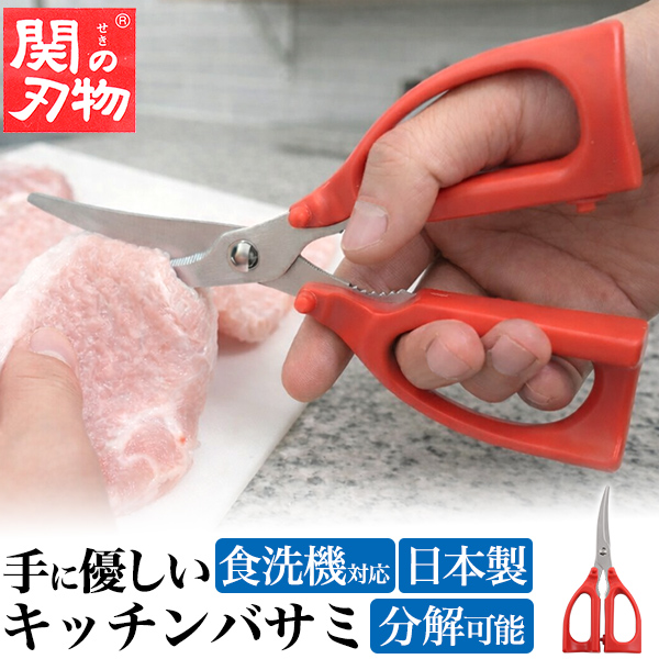 キッチンバサミ 日本製 食洗器対応 キッチン はさみ 分解可能 お手入れ簡単 衛生的 関の刃物 滑らず切れるカーブ キザ刃 食材 材料 カット 料理 下ごしらえ ステンレス刃物 新生活 送料無料 便利 キッチン用品 台所用品