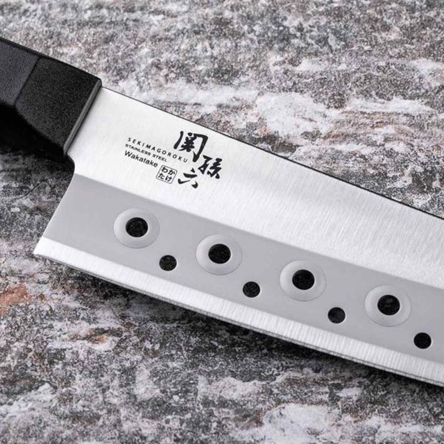 三徳包丁 16.5cm 関孫六 わかたけ 穴あき包丁 貝印 日本製 ( 包丁 庖丁 万能包丁 三徳庖丁 文化包丁 ステンレス 食洗機対応 16.5センチ 切れ味抜群 長持ち 穴あき 調理器具 国産包丁 ほうちょう 錆びにくい )