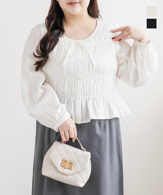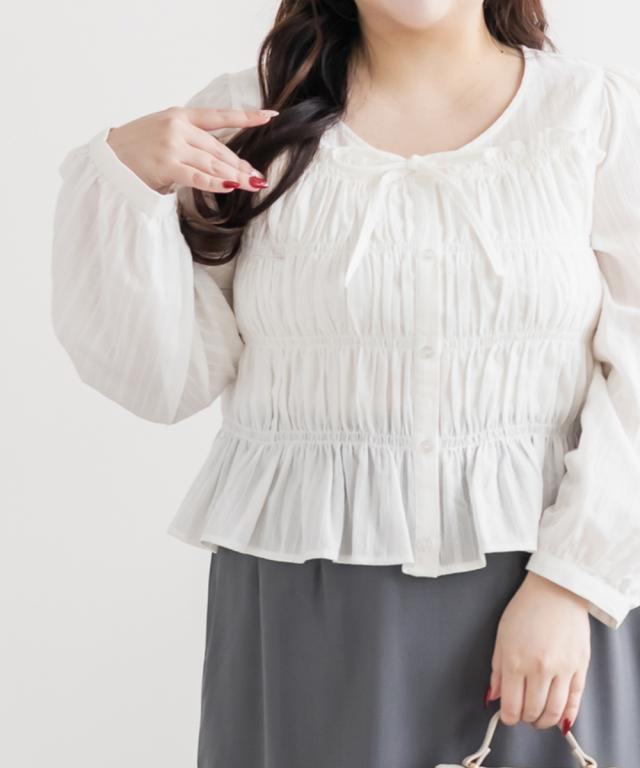 大きいサイズ/レディース/3L/4L/シャーリングリボンブラウス