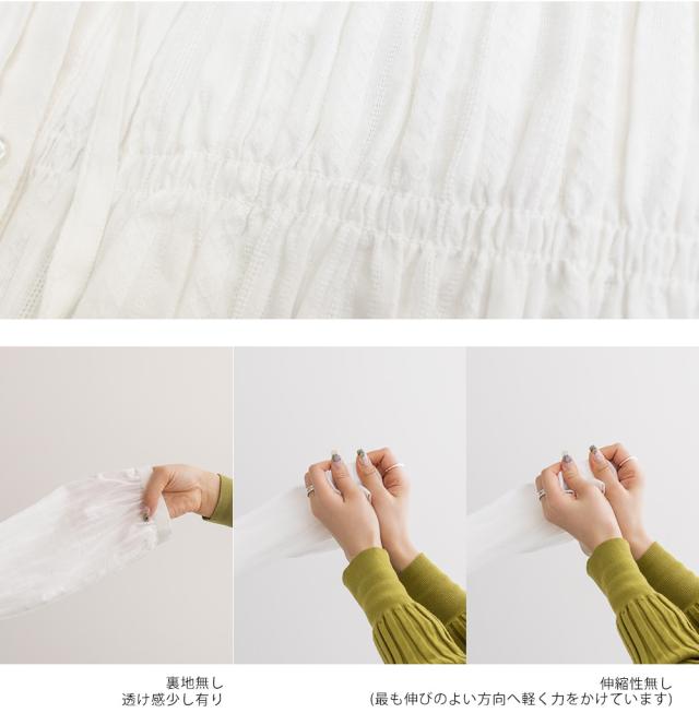 | 裏地無し、透け感わずかに有り、伸縮性無し |
