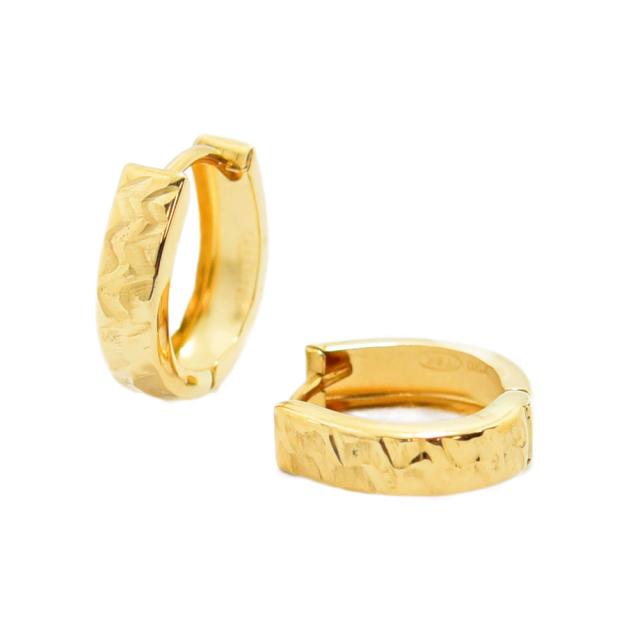 表面にカットが施されたキラキラと輝くシンプルなデザインピアスです。留め金具はワンタッチで留めやすく落ちにくい中折れ開閉式です。