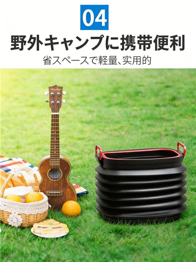 【多用途】車内用ゴミ箱、傘立て、小物入れ、釣り、水汲み、掃除、洗車、園芸、防災、アウトドア、バーベキュー、旅行、浸け置き洗い、車載収納などに最適です。様々なシーンに対応可能の万能バケツです!