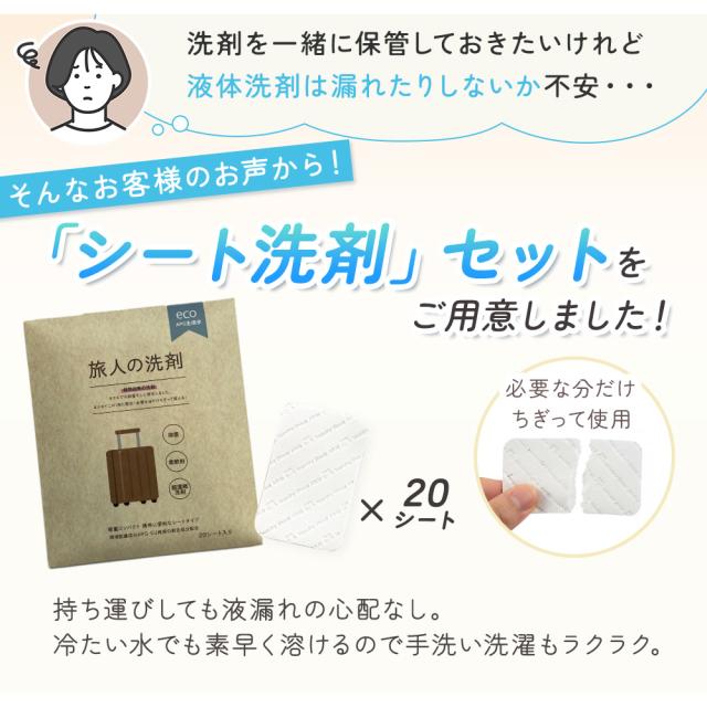 旅行中は洗面台での手洗いが増えがち。スマートランドリーバッグを使えば、手洗いの工程を効率化しやすく、余計なこすり洗いを減らして手荒れ対策にもつながります。洗濯を時短しつつ、旅先でも清潔感を保ちたい方におすすめの洗濯グッズです。
