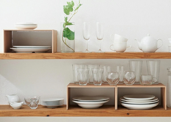 収納スペースを増やしたい場所に置くだけで、手軽に収納力をプラスできるプラスラックです。棚板を1枚増やすような感覚で、簡単に設置可能。食器棚やカップボードなど、「あと少し」収納スペースが欲しいときにおすすめです。