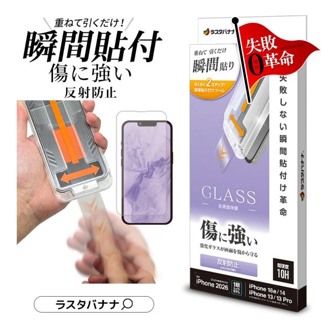 iPhone 17e iPhone 16e 14 13 Pro 13 ガラスフィルム 全面保護 アンチグレア 反射防止 貼付革命 瞬間貼り 失敗しない瞬間簡単貼り付け レボリューション 0.33mm 硬度10H アイフォン 保護フィルム MTK5295IP6E ラスタバナナ