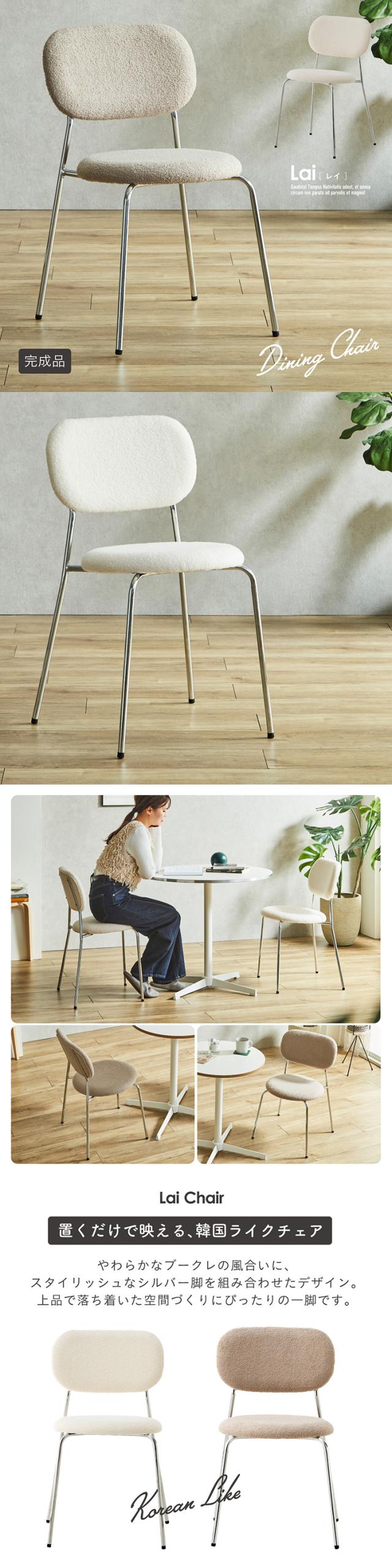 ダイニングチェア 北欧 韓国風 チェア おしゃれ 椅子 いす 食卓椅子 デスクチェア カフェチェア リビングチェア ブークレ ファブリック スチール脚 シルバー脚 モダン コンパクト 軽量 Lai レイ 1客単品 2色対応