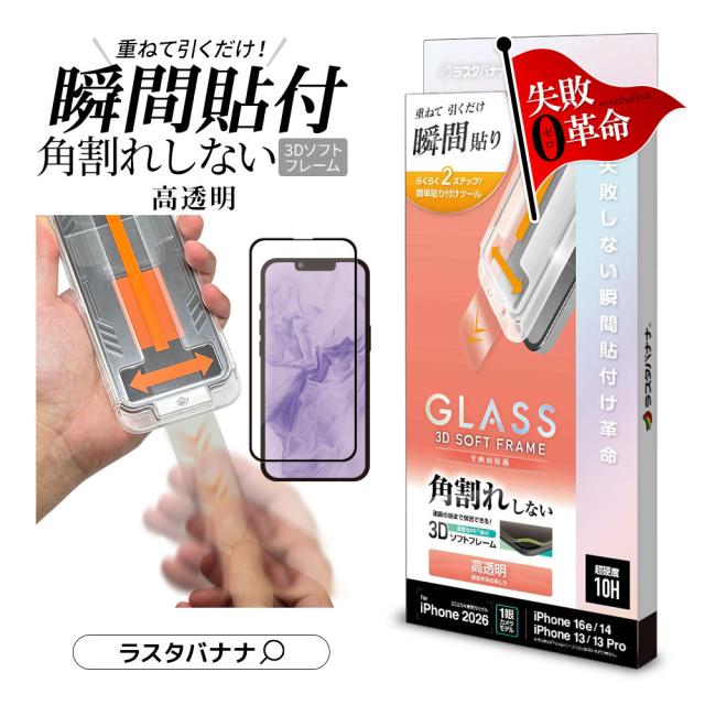 iPhone 17e iPhone 16e 14 13 Pro 13 ガラスフィルム 全面保護 高光沢 高透明 クリア 貼付革命 貼り付け革命 瞬間張り 失敗しない瞬間簡単貼り付け レボリューション 角割れしない 0.25mm 硬度10H アイフォン 保護フィルム MTK5299IP6E ラスタバナナ
