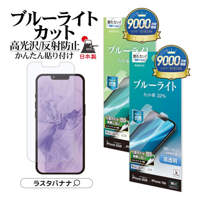 iPhone 17e iPhone 16e フィルム 全面保護 ブルーライトカット 高光沢 マット アンチグレア 反射防止 抗菌 日本製 貼り付けガイド アイフォン 保護フィルム ラスタバナナ