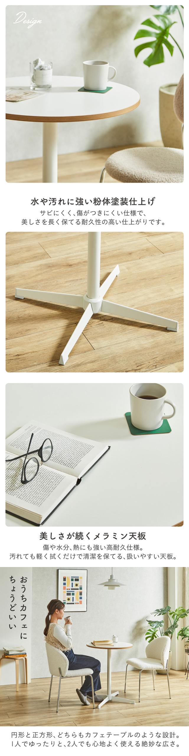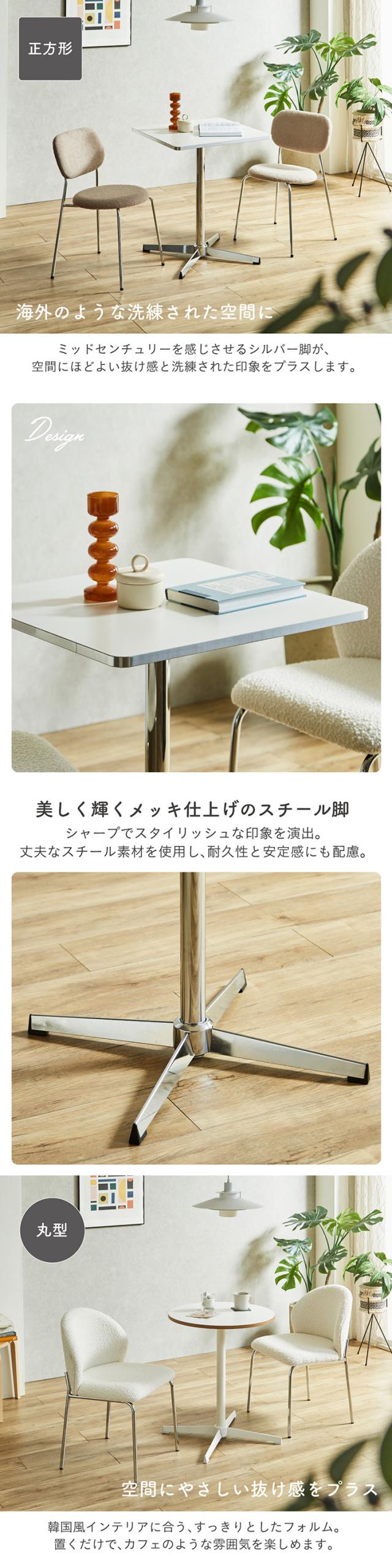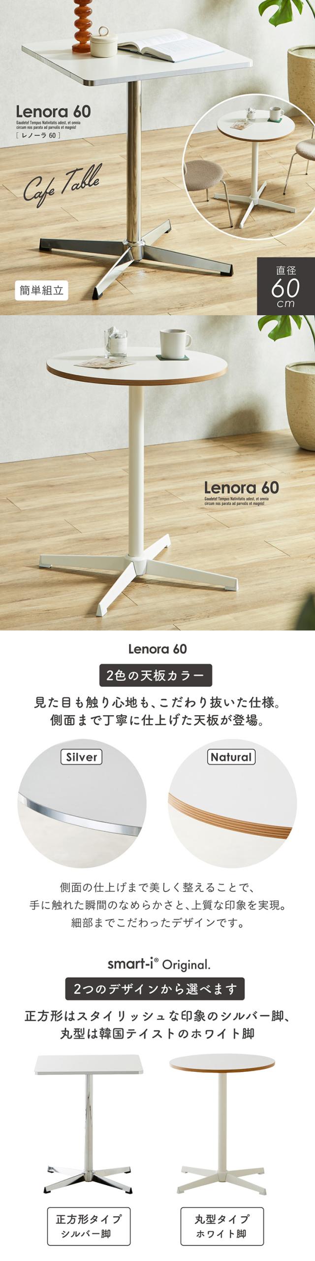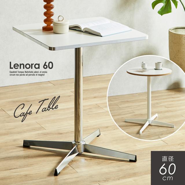 ダイニングテーブル 60cm 丸テーブル 正方形 カフェテーブル 2人用 1人用 おしゃれ 北欧 韓国風 コンパクト メラミン天板 スチール脚 シルバー脚 ホワイト脚 小さめ 省スペース Lenora レノーラ 2タイプ 2色対応