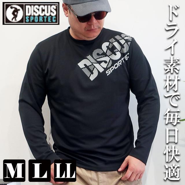 DISCUS SPORTEC ドライ 長袖Tシャツ メンズ ブランド クローズホールメッシュ BIGロゴプリント 吸汗速乾 ポリエステル クルーネック スポーツ カジュアル M L LL ドライ素材 ルームウェア 部屋着 トレーニング ジョギング ウォーキング 春 夏 秋 10002044