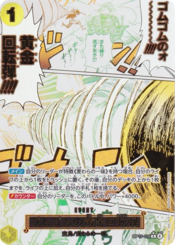 【パラレル】ワンピースカードゲーム OP15-116 ゴムゴムの黄金回転弾 (R レア) ブースターパック 神の島の冒険 (OP-15)