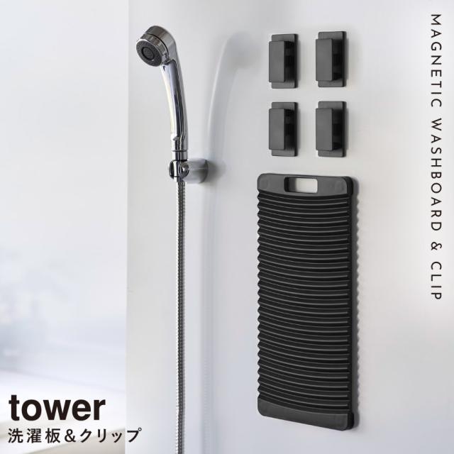 マグネット洗濯板&クリップ タワー 山崎実業 tower 洗濯板 靴下 野球 ユニフォーム 洗濯 泥汚れ おしゃれ モノトーン ホワイト ブラック 10553 10554