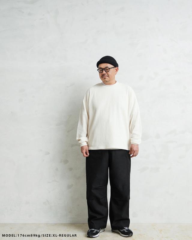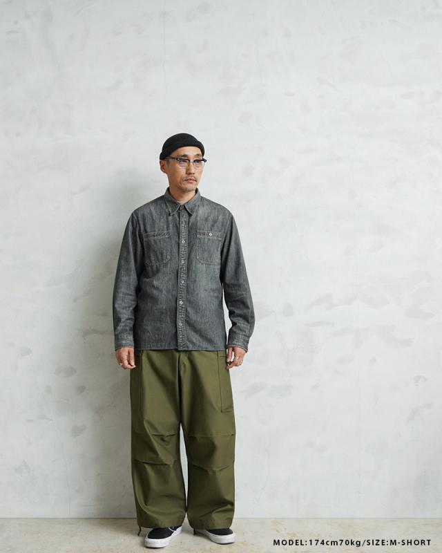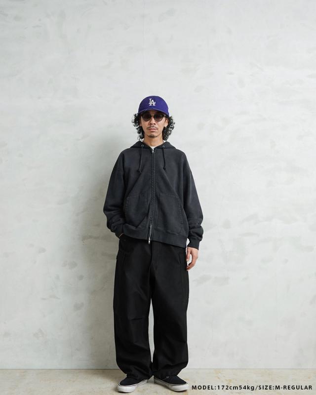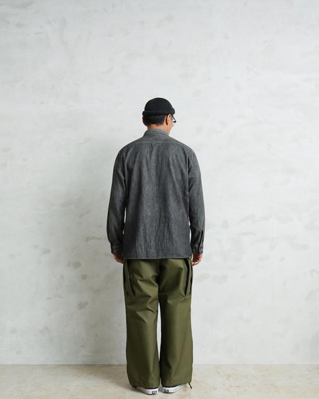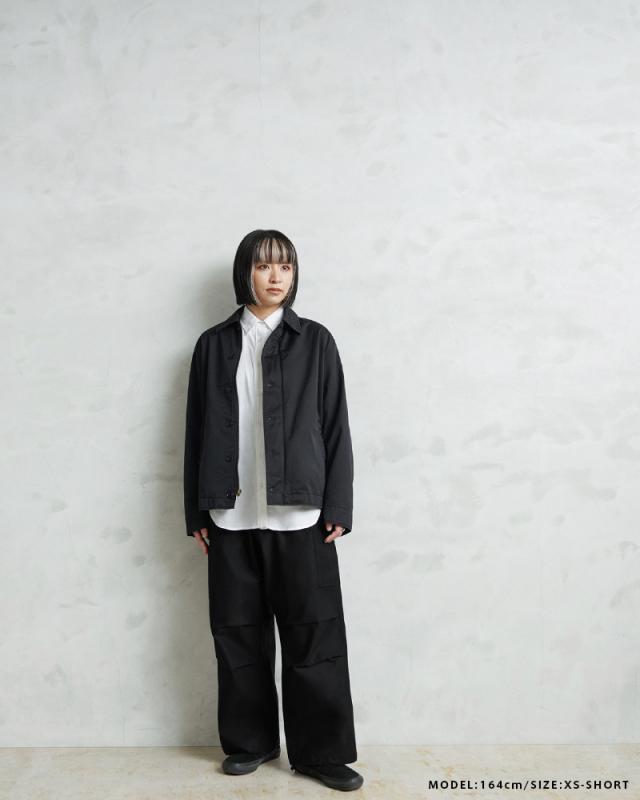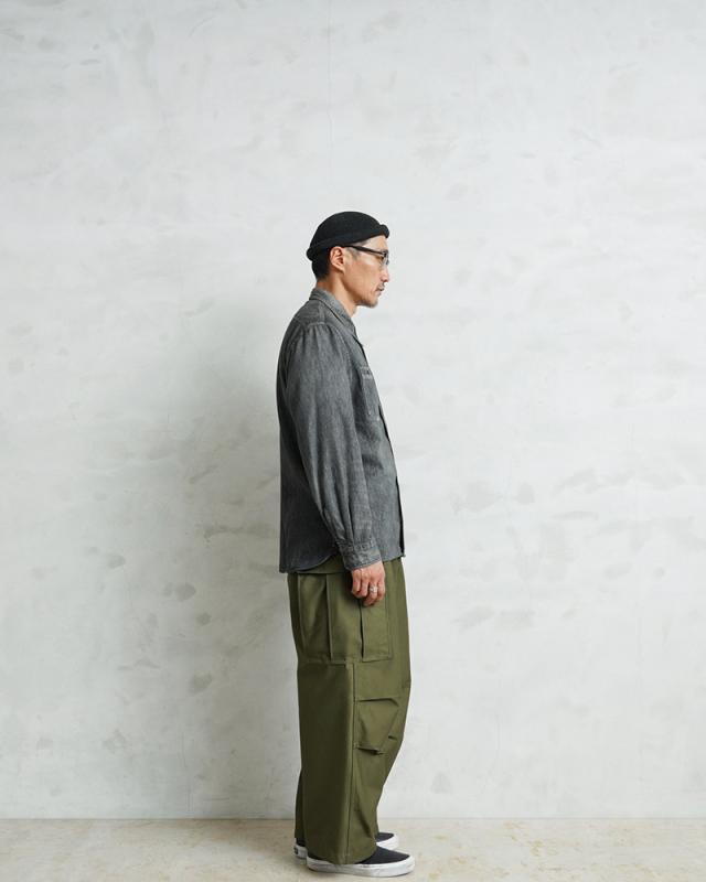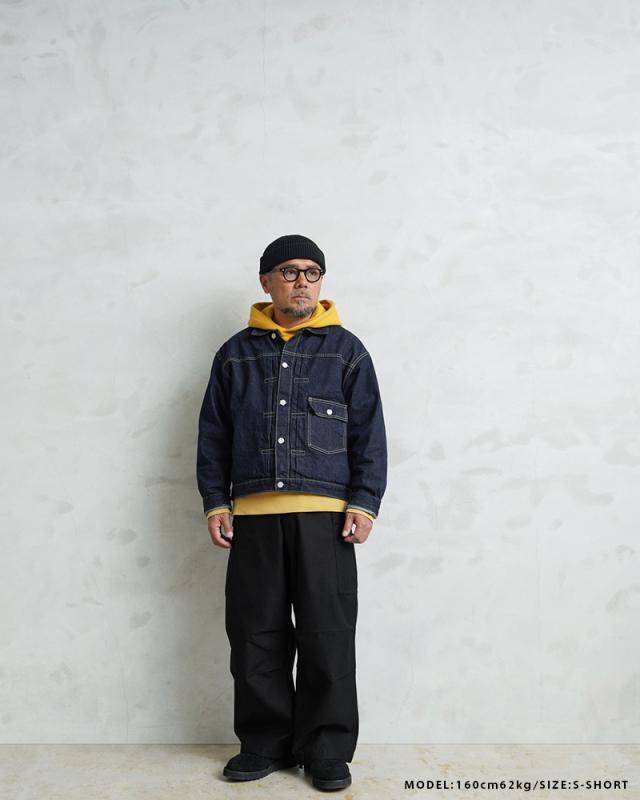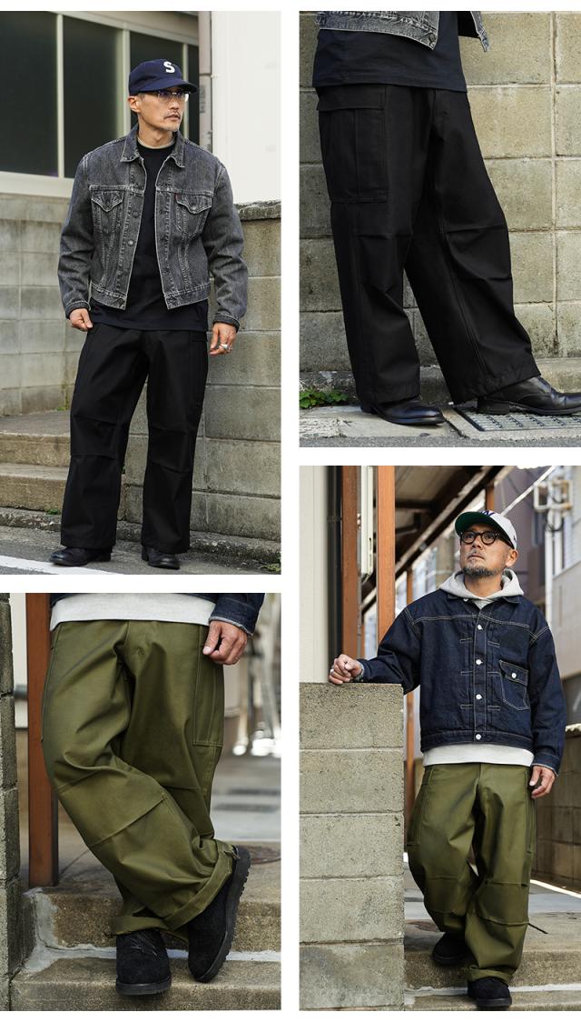 生地には、オリジナルで織り上げたコットンサテン生地を採用。洗い込むほどに風合いが増し、ヴィンテージさながらの経年変化を楽しめます。重量感のある生地が生む立体的なシルエットも魅力です。