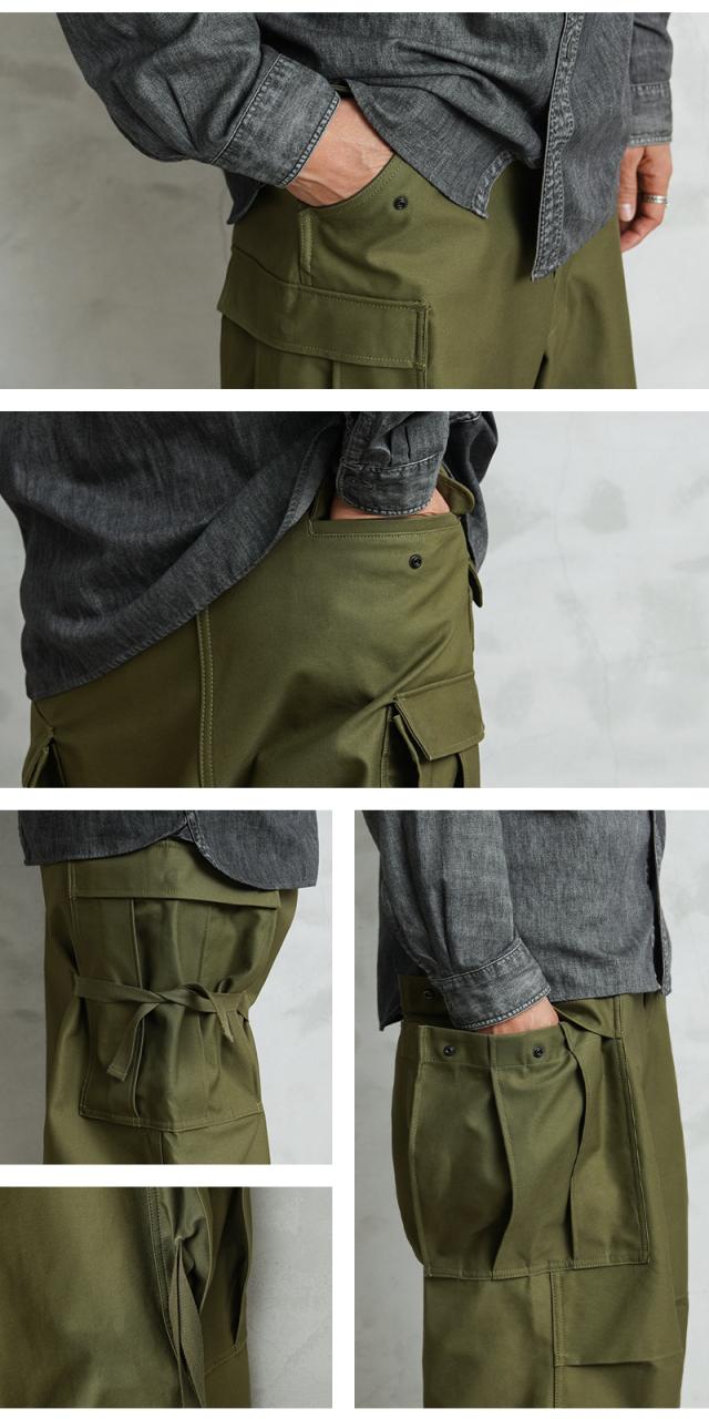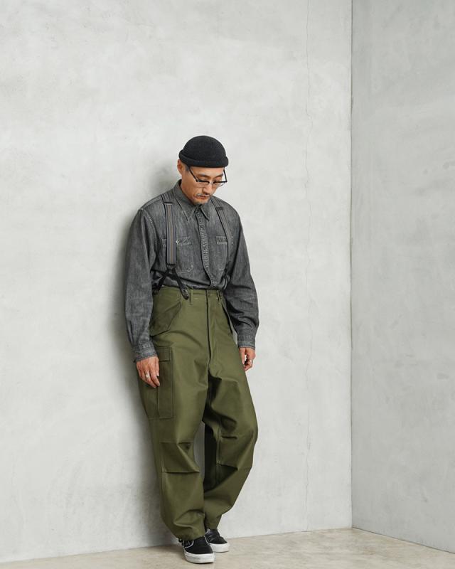 M-51パンツは、現代におけるカーゴパンツの原型として知られ、後継のM-65と並び米軍ミリタリーパンツを代表する存在。1950年代の朝鮮戦争期に採用された「M-51シリーズ」は、モッズコートとして知られるパーカーやフィールドジャケットと同型番で統一されたユニフォームラインであり、極寒地での運用も想定し、着脱式ライナーを装着できる設計が特徴です。