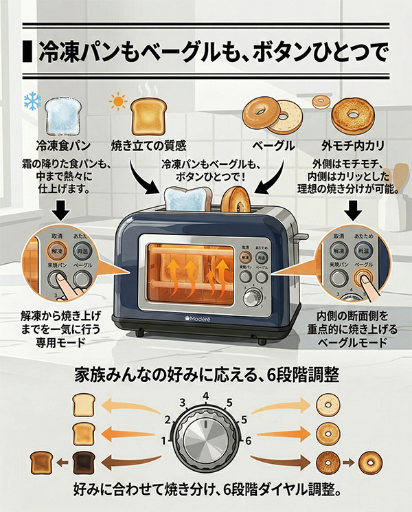 ■ 冷凍パンもベーグルも、ボタンひとつで