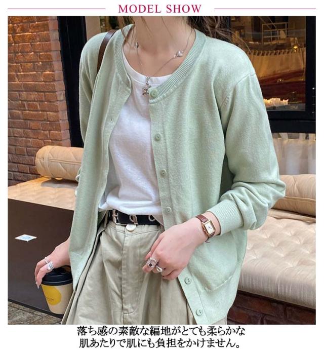 | 薄手ニットカーディガン。 落ち感の素敵な編地がとても柔らかな肌あたりで肌にも負担をかけません。 裾と袖口はリブで切り替えられているので、手首や腰回りはスッキリとした印象に! 薄手素材なのでコンパクトサイズにできて持ち運びにも便利なところがうれしいポイント。 | |