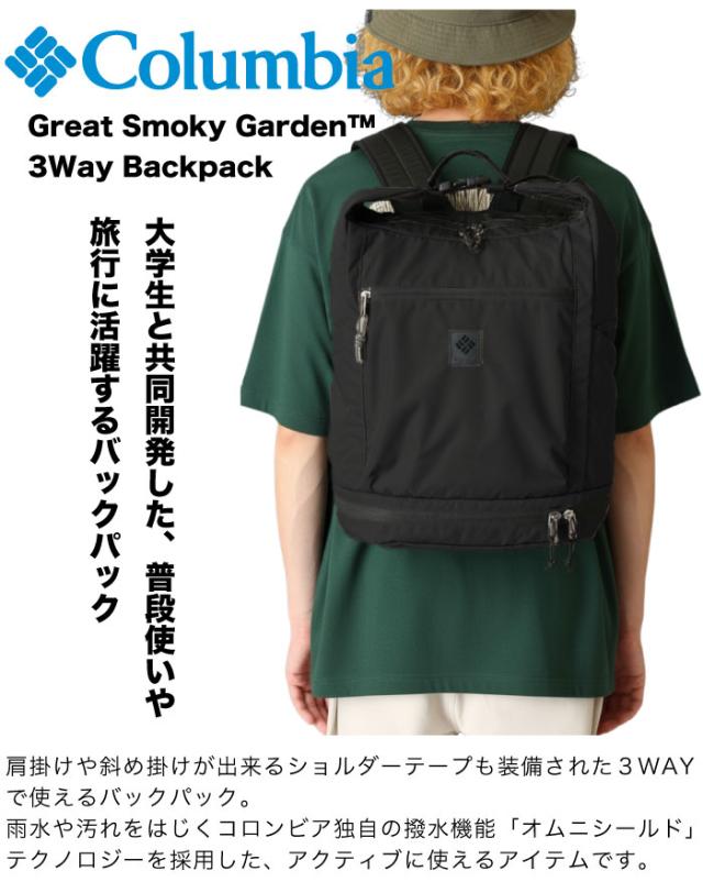【セール5%OFF】 Columbia コロンビア グレートスモーキーガーデン3ウェイバックパック 20L リュックサック ショルダーバッグ 肩掛け 斜めがけ 撥水 防汚 大容量 通勤 通学 学生 旅行 ビジネス 出張 アウトドア PU7234