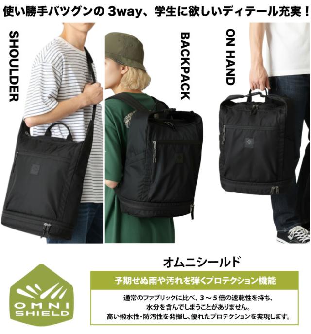 シーンに合わせてリュック・肩掛け・斜め掛けの使い分けができる、実用性の高いモデルです。