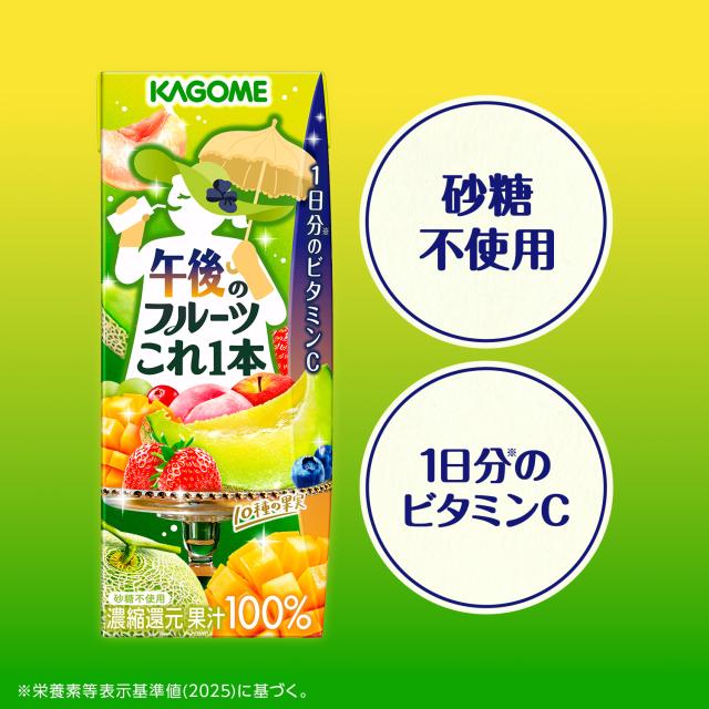 午後のひとときに味わう、メロンやマンゴーなど10種の果実をブレンドし、現在の「フルーツこれ一本」シリーズの中で最も甘くて濃厚な味わいの100%果実ミックスジュースです。