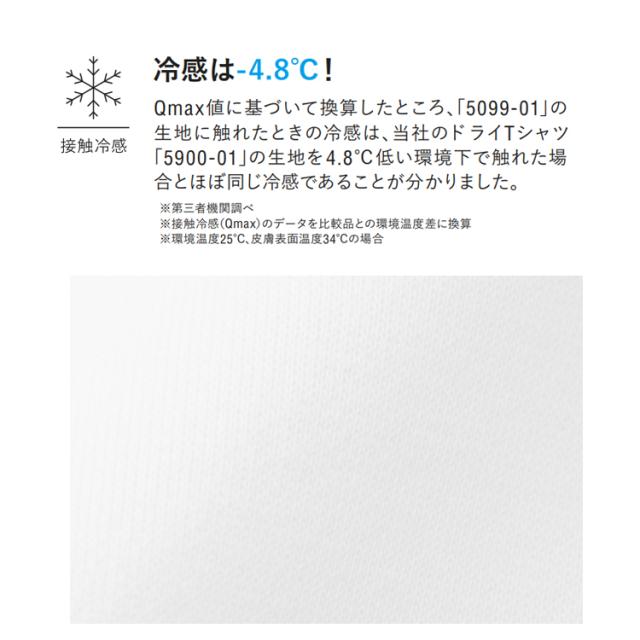 2026年 春夏 新作 クール素材 半袖 Tシャツ 5.6オンス C/N ドライ クールタッチ Tシャツ 無地 5099-01 男女兼用 ユニセックス 接触冷感 シンプル 熱中症対策 スポーツ ダブルフェイス生地
