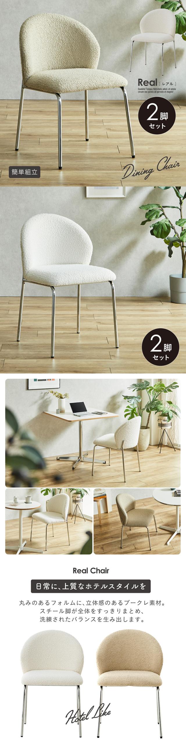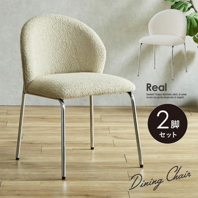 ダイニングチェア 北欧 韓国風 チェア おしゃれ 椅子 いす 食卓椅子 シェルチェア ブークレ ファブリック スチール脚 メッキ脚 カフェチェア リビングチェア モダン Real レアル 2脚セット 2色対応