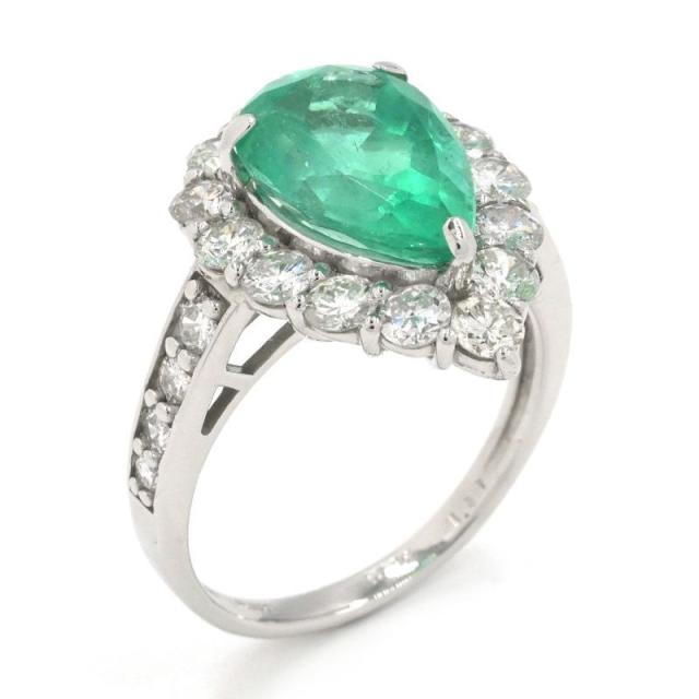 2.794ct天然エメラルドリング 12号 Pt950 1.37ct天然ダイヤモンド ペアシェイプカット ティアドロップ プラチナ 地金4.7g 中古 送料無料