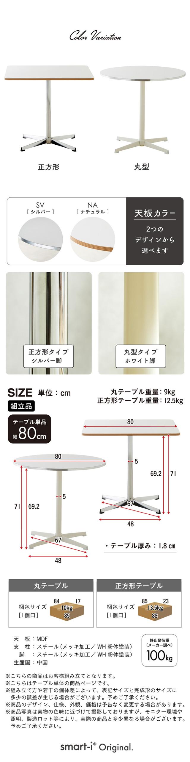 ダイニングテーブル 80cm 丸テーブル 正方形 カフェテーブル 2人用 1人用 おしゃれ 北欧 韓国風 コンパクト メラミン天板 スチール脚 シルバー脚 ホワイト脚 小さめ 省スペース Lenora レノーラ 2タイプ 2色対応