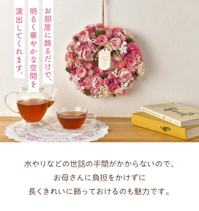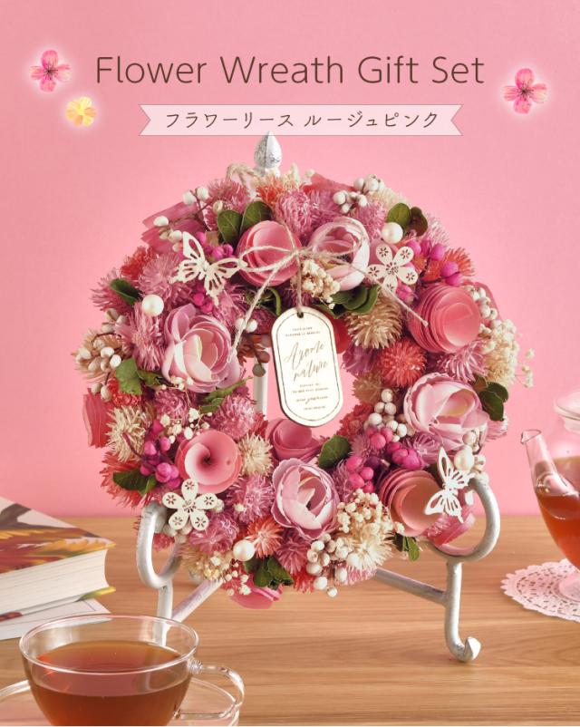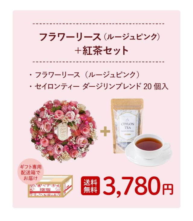 母の日 フラワーリース+紅茶セット ルージュピンク ギフトセット 超早割 早割 ギフト 贈り物 おしゃれ かわいい プレゼント ブリザーブドフラワー 2026