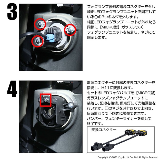 LEDフォグと交換出来るピカキュウのオリジナルフォグランプユニット。