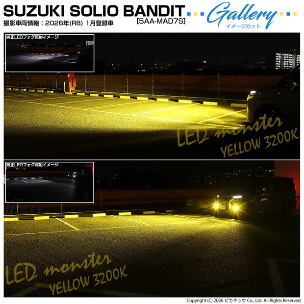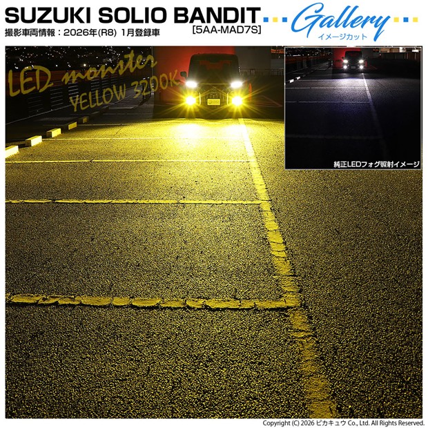 ピカキュウ,LED専門店ピカキュウ,ピカキュウledフォグ,ガラスレンズ付,フォグユニット,フォグランプ,ハロゲンフォグランプ,前部霧灯,スズキ車対応,SUZUKI,純正LEDフォグと交換,クリアレンズ,フォグユニット,クリアレンズ,ガラスレンズ,H8対応,H11対応,H16対応,L8400,LED MONSTER,LEDモンスター,8400lm,イエロー,SUZUKI,スズキ,SOLIO,ソリオ,BANDIT,バンディット,MAD7S,3型