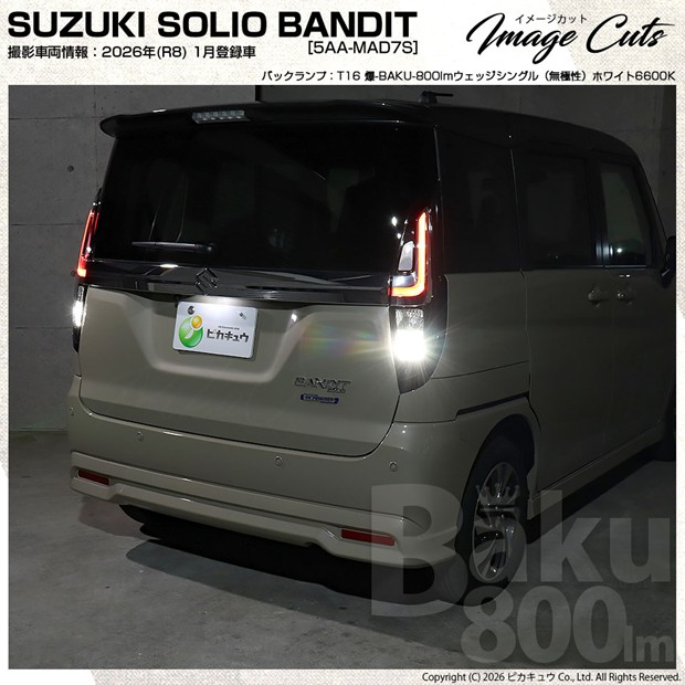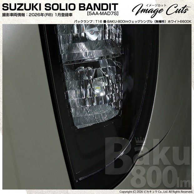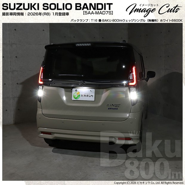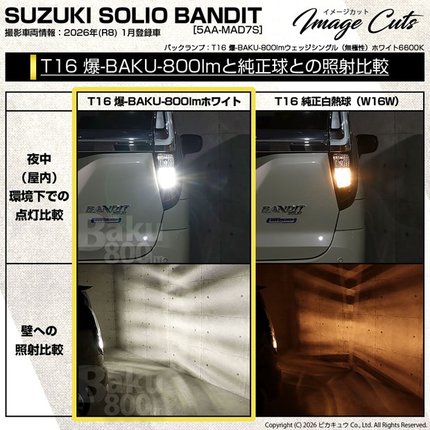 ピカキュウ,LED専門店,LEDバルブ,LED,SMD,T16ウェッジ,定電流回路搭載,T16S,T16シングル,BAKU 800lm ウェッジシングル球,全光800lm,白色,6600ケルビン,ホワイト,バックランプ専用LEDバルブ,SUZUKI,スズキ,SOLIO,ソリオ,BANDIT,バンディット,MAD7S,3型