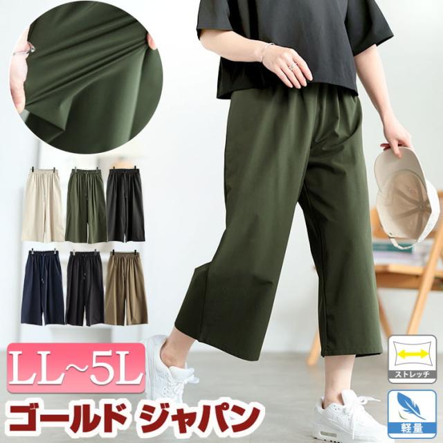 春新作 大きいサイズ レディース パンツ ズボン 軽量ストレッチクロップドワイドパンツ ボトムス ワイドパンツ ガウチョ クロップド ロング 軽量 薄い 涼しい 春服 夏服 秋服 LL 2L 3L 4L 5L アイボリー ベージュ カーキ チャコール ネイビー ブラック 黒 ゴールドジャパン
