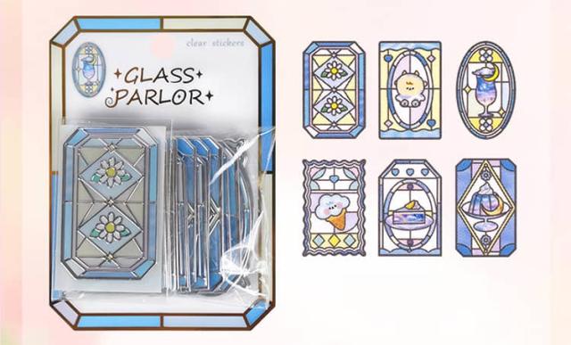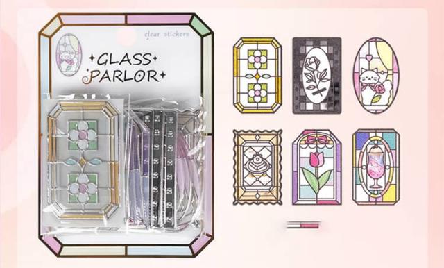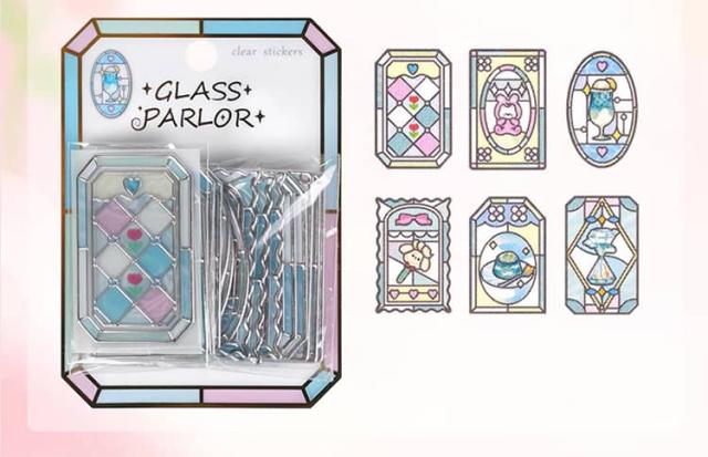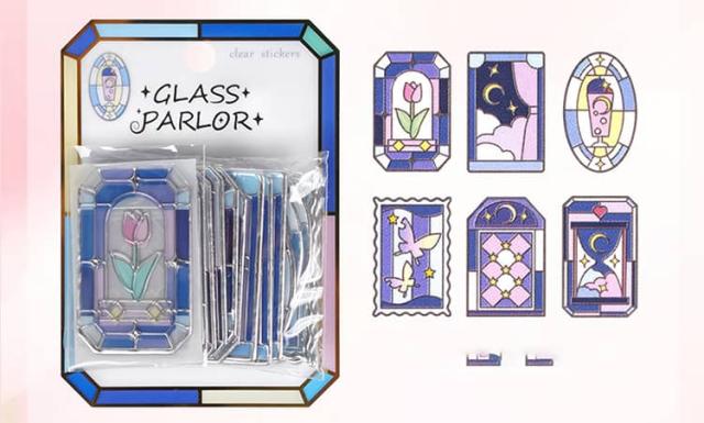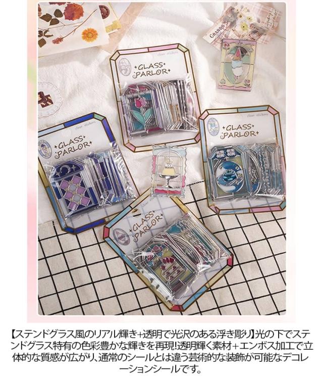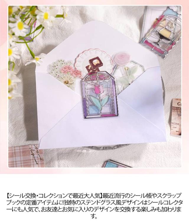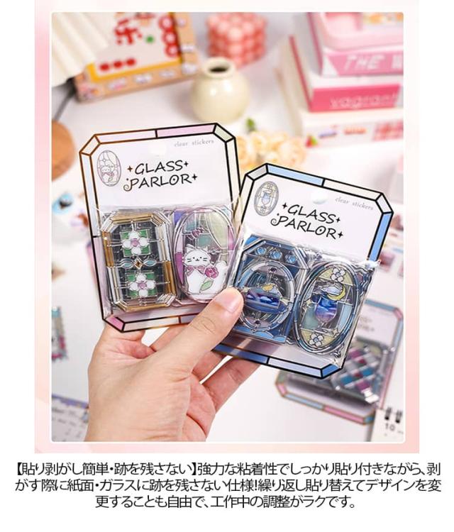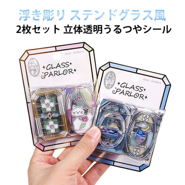手帳デコ 2枚セット 透明タイプ 立体 2枚セット デコレーション つやつや ステンドグラス風うるつや コレクション DIY 自粘 防水 ギフト用 ご褒美 ステンドグラス風デコレーションステッカー 光沢 SNSで大人気 推し活