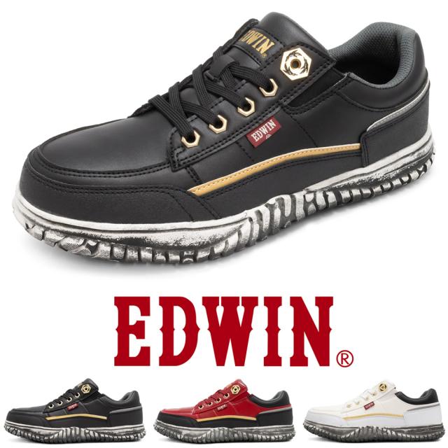 EDWIN 安全靴 鉄先芯 メンズ ローカット スニーカー おしゃれ 作業靴 軽量 衝撃吸収ソール 耐滑防滑 着色加工底 つま先保護 シューズ EDWIN エドウィン ESM105|正規販売店