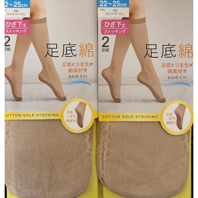4足組 足底綿のひざ下丈ストッキング2足組×2セット ショートストッキング、ムレ対策、足底とつま先が綿素材でムレにくい