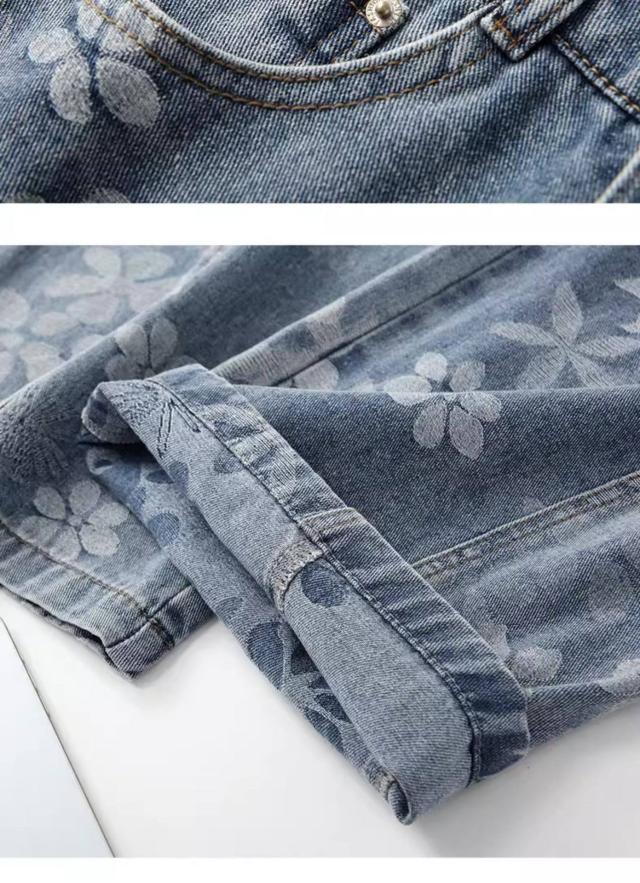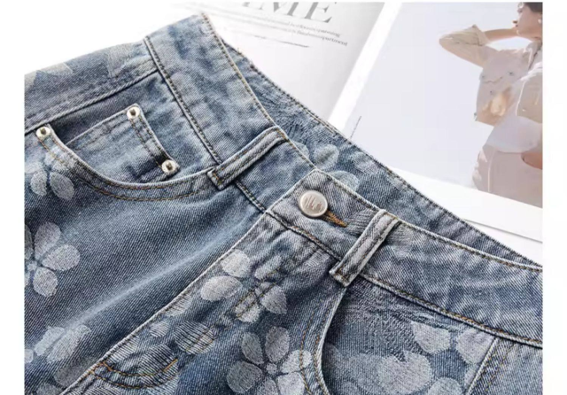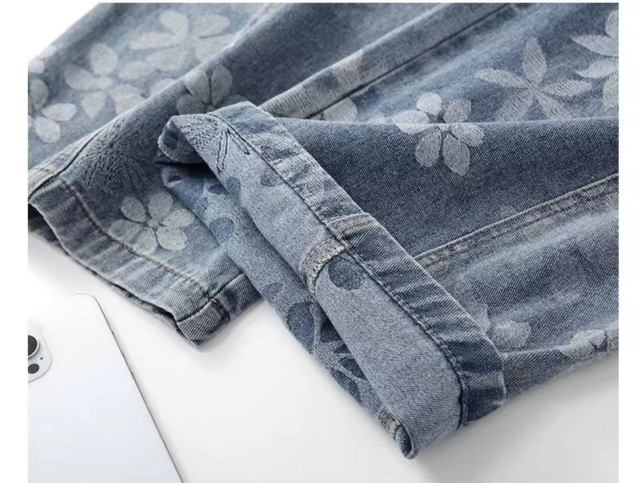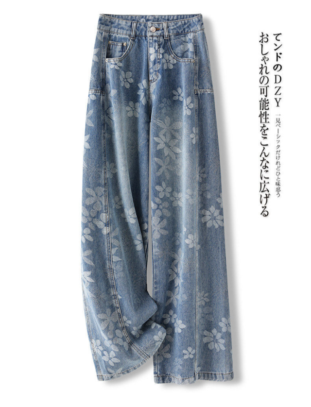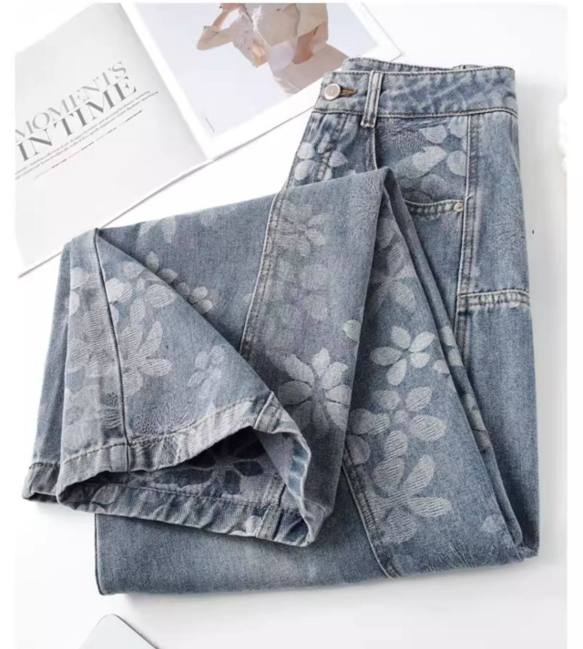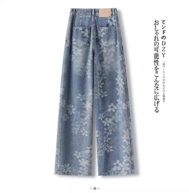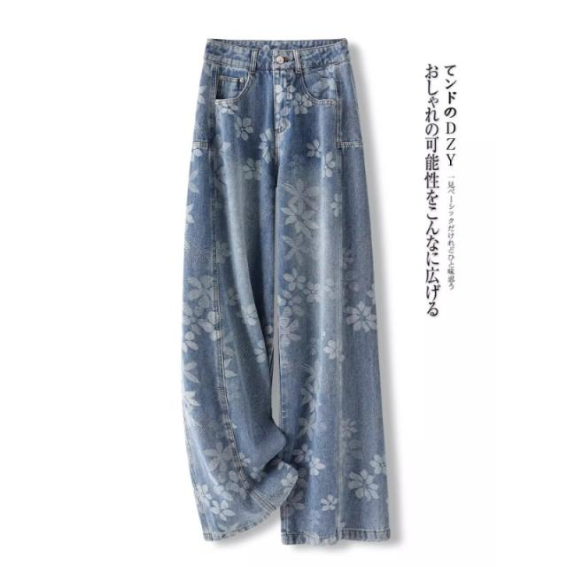 高級デニムブルー 弯刀ストレートパンツ 2026 新作 精緻刺繍加工 ワイドレッグ 着痩せ 通勤カジュアル両用-51