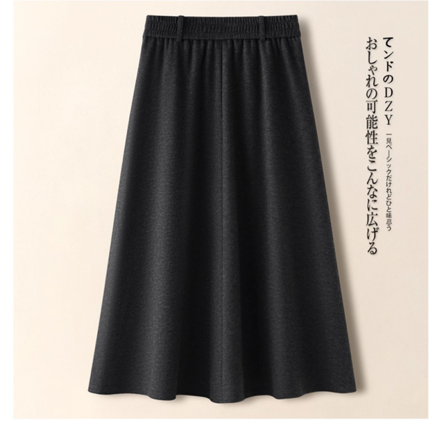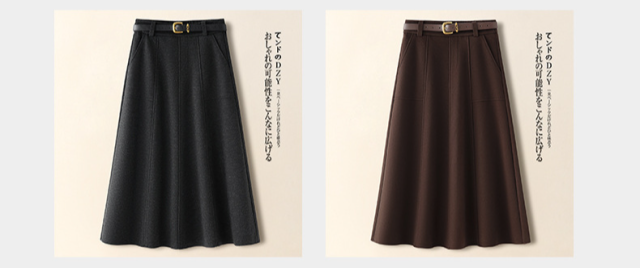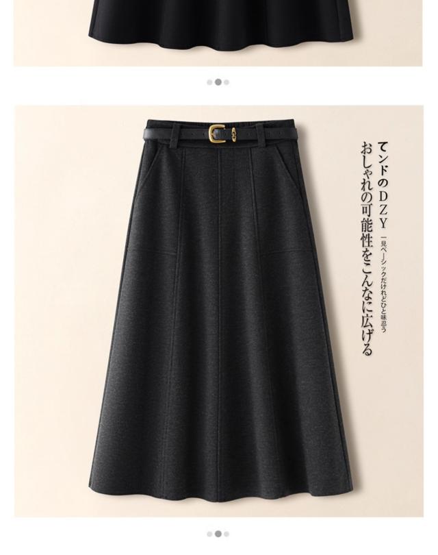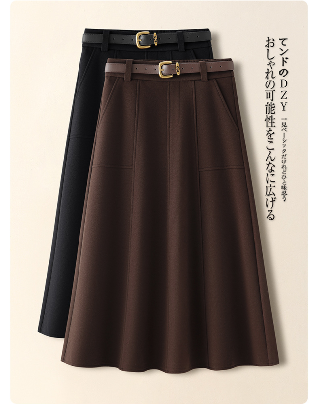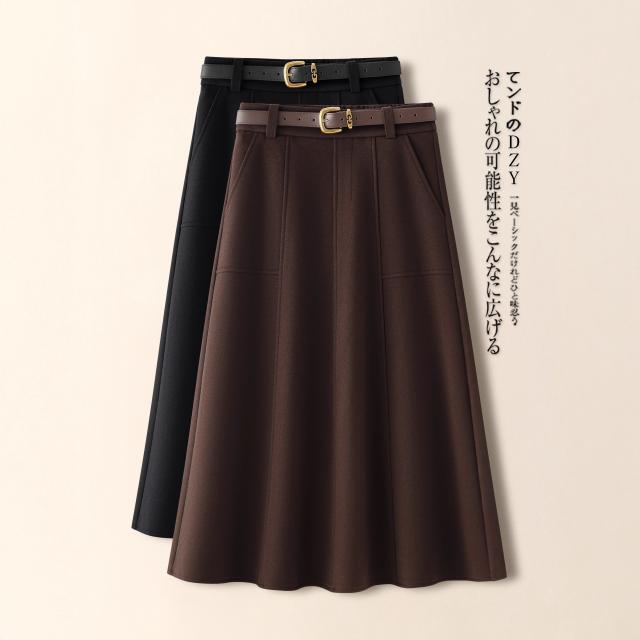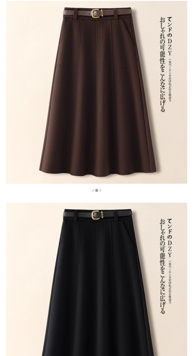 2026新作 高級感ブラウン ウールライクスカート レディース A ライン 着痩せ ドレープ フレア傘スカート 春秋冬対応-60