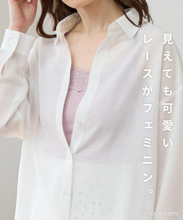 開きの広いトップスと合わせてレースを見せるのはもちろん、シャツやワンピースのインナーとしても、毎日大活躍。