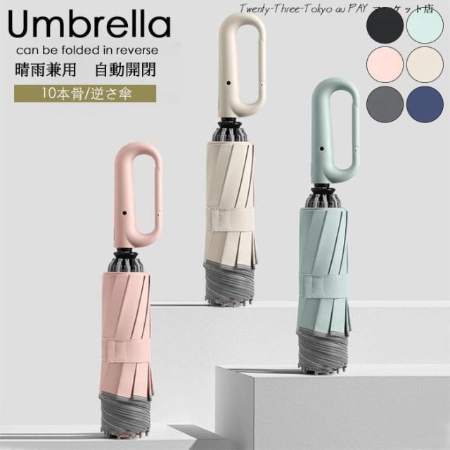 送料無料 折りたたみ傘 ワンタッチ 逆折りタイプ 自動開閉 逆さ傘 晴雨兼用 男女兼用 カラビナハンドル 折り畳み傘 軽い UVカット