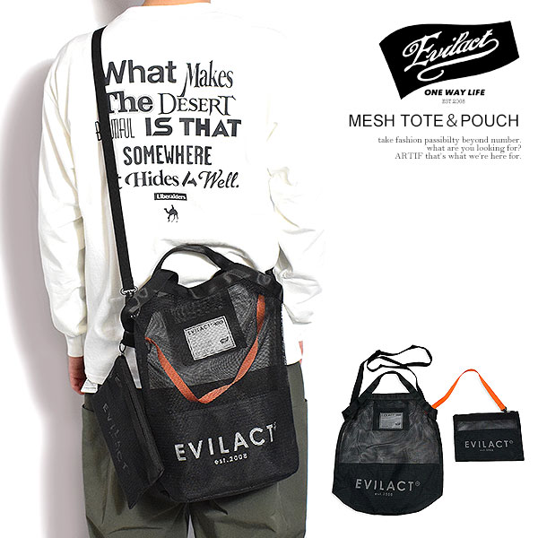 EVILACT イーブルアクト MESH TOTE&POUCH メンズ トートバッグ ミニポーチ メッシュ素材 2個セット カバン ストリート atfacc
