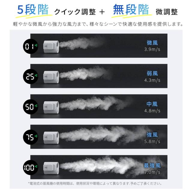 【超強力送風 × 無段階風量調整(1〜100段階)で思い通りの涼しさ!】
