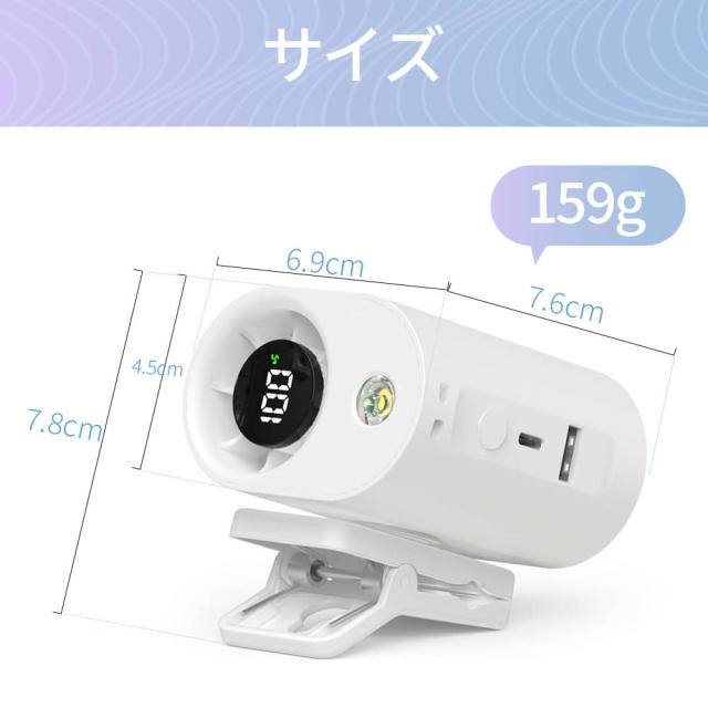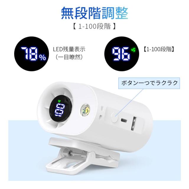 高性能バッテリーを内蔵し、最弱モードでは最大11時間もの連続使用が可能。風量を中程度にしても約9時間、強風モードでも8時間使えるため、通勤や屋外イベント、キャンプなど長時間の使用にも安心。USB充電にも対応しており、どこでも充電しやすく、モバイル性に優れた一台です。軽量かつコンパクトで、バッグに入れても邪魔になりません。