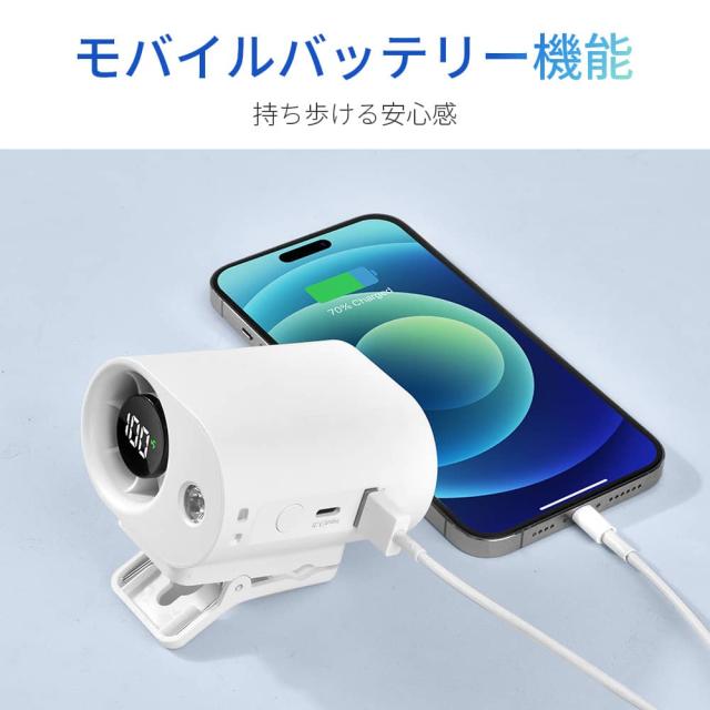 LEDライトが搭載されており、防災グッズとしても活用可能。災害時の停電や、夜間の外出、アウトドアでのランタン代わりなど、あらゆる場面で安心感を提供します。USB充電式でモバイルバッテリーからも手軽に充電でき、外出先やキャンプなどでも便利に活躍。1台2役のスマート設計で、夏の必需品としてぴったりです。
